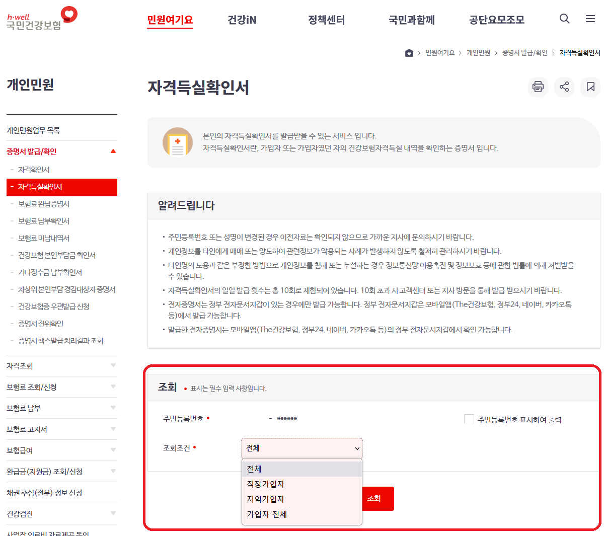 <Tip>건강보험자격득실 확인서 발급/FAX 보내기